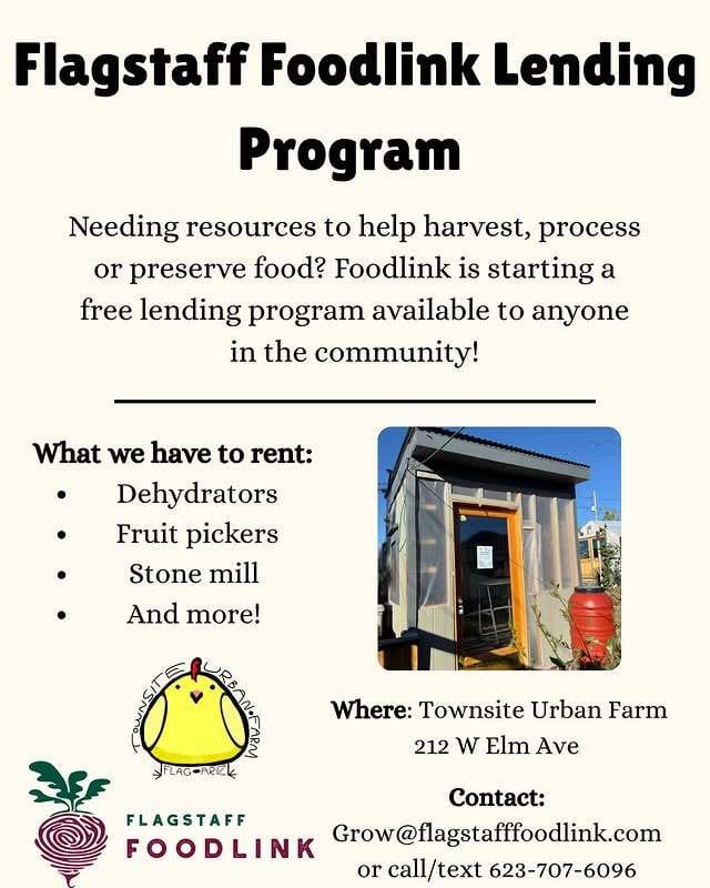 Good morning, Flagstaff! I was excited to see that Flagstaff Foodlink has a new FREE program where anyone can borrow tools to help harvest, process, or preserve food. Info about that at the end of the email.